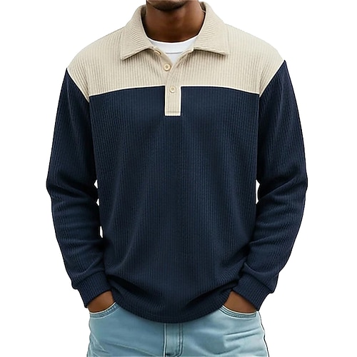 Per uomo Camicia di Velluto a Coste Polo Streetwear Casuale Bavero Manica Lunga Essenziale Moderno Blocco di colori Bottoni Primavera Autunno Vestibilità regolare Blu marino Color cenere Azzurro cielo
