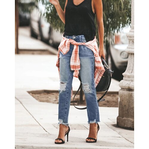 Per donna Pantaloni Eleganti Leggings comodi Dritto Streetwear Casual Lunghezza intera Naturale Semplice Tasca Strappato Comodo Vacanza Uscire Blu cielo chiaro Blu marina Nero Autunno Vestibilit