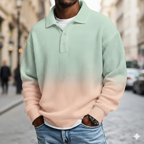 Per uomo Sfumatura Magliette Polo a Nido d'Ape Manica Lunga Magliette polo Bavero Casual Scuola Athleisure Abbigliamento quotidiano Stampa 3D Primavera Autunno Inverno Nero Blu marino Azzurro cielo