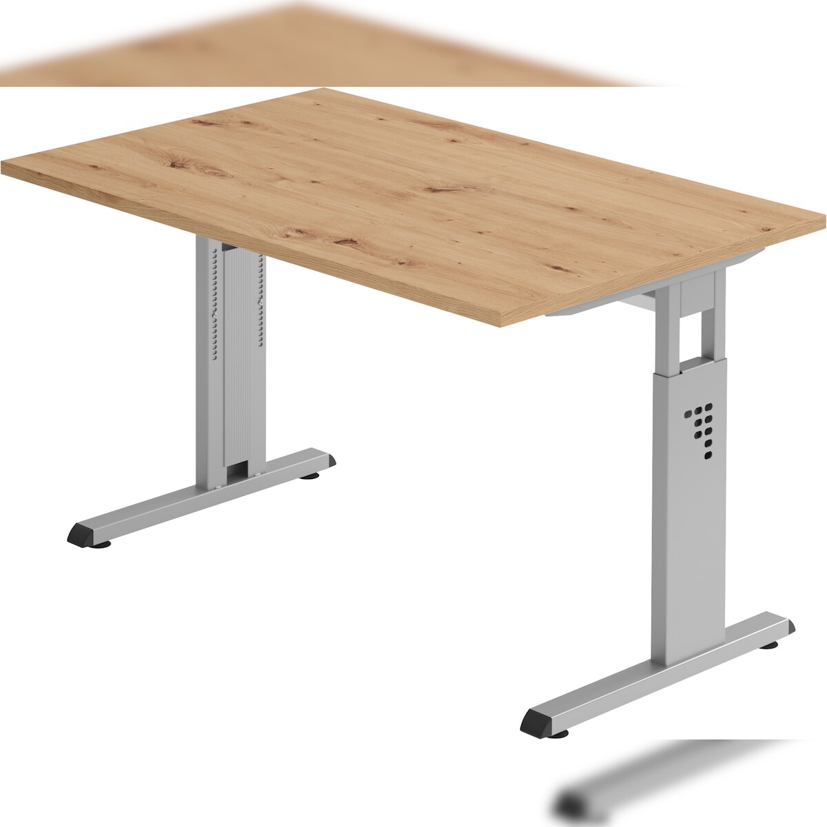 bümö höhenverstellbarer Schreibtisch O-Serie 120x80 cm in Asteiche, Gestell in Silber - PC Tisch klein für's Büro manuell höhenverstellbar,