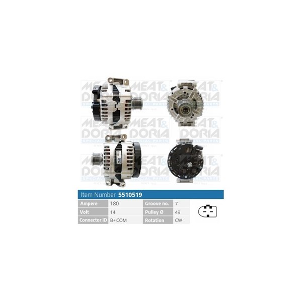 Laturi 14V 180A Meat & doria 5510519 - mercedes-benz cls [c219], e-klass [w211], e-klass t-model [s211] - OE 013 154 70 02, 0131546402, 013154640280