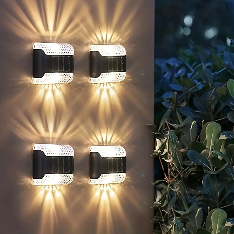 4 Pcs LED Solar Outdoor Wall Lights Fence Light Up and Down Lighting Wall Lamp Outdoor Waterproof Garden Courtyard Landscape Atmosphere Decorative Lights