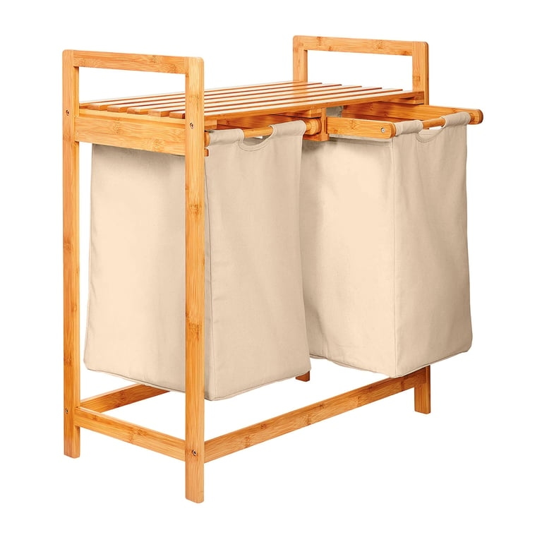 Lumaland Wäschekorb aus Bambus mit 2 ausziehbaren Wäschesäcken - 73 cm x 64 x 33 cm - Beige