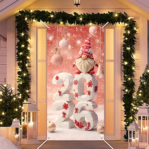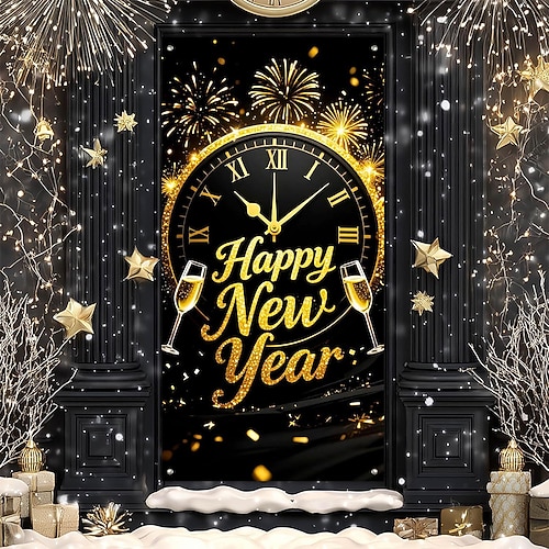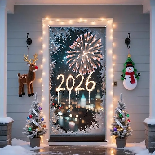 Capodanno arazzo Poster Copertura della porta Buon anno 2026 Carino 3D Da serata Dormitorio Stanza per adolescenti Dormitorio universitario Ragazzi Man Cave Frat Bedroom Sfondi di ripresa Arredamento