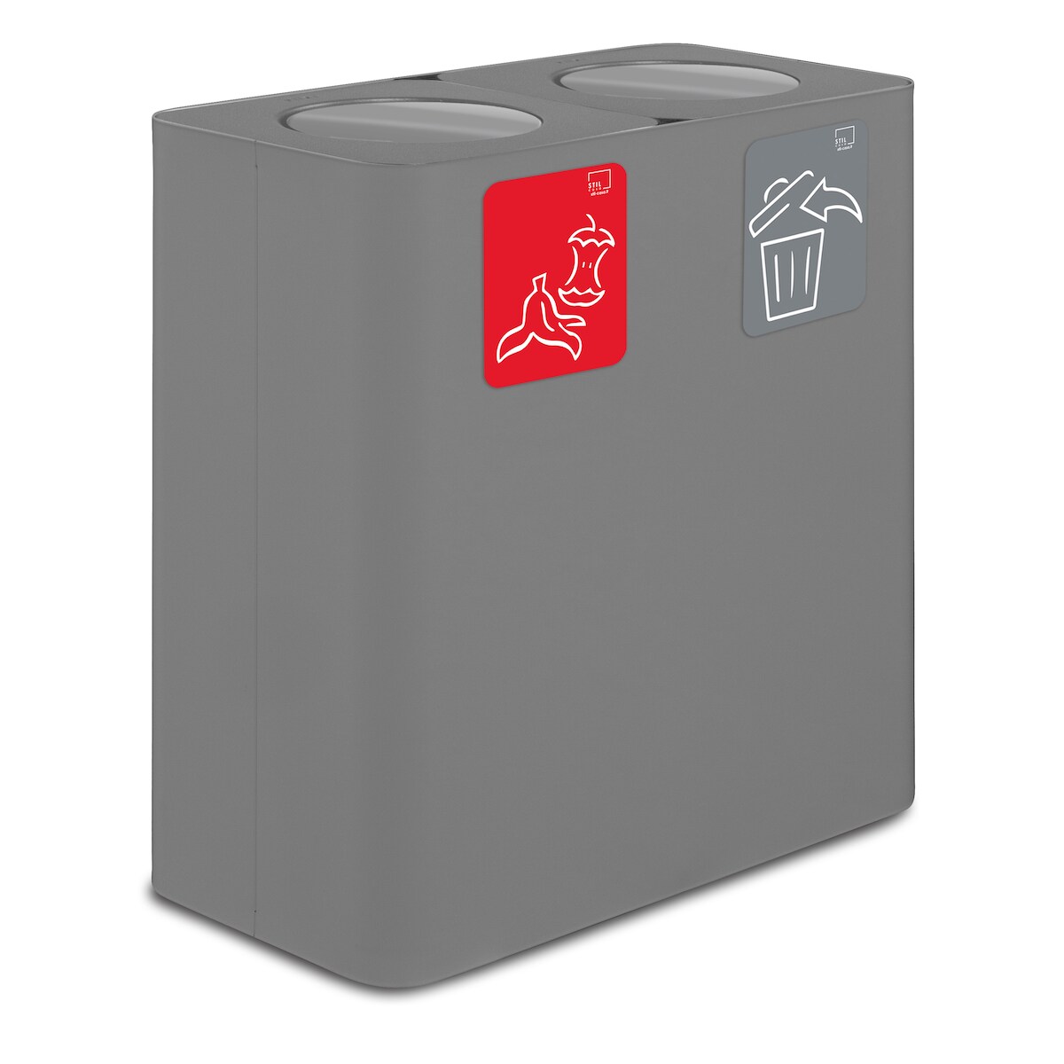 Stil Casa PURE Abfallsammelsystem, lackierter Stahl, 77x38xh. 80 cm, Abdeckung mit kippschwenkbarem Deckel, 200 Liter, grau.