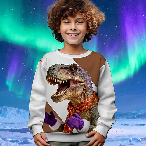 Natale Ragazzi 3D Dinosauro Felpa Manica Lunga Primavera Autunno Moda Essenziale Bambini 4-12 Anni Girocollo All'aperto Casuale Quotidiano Vestibilità regolare
