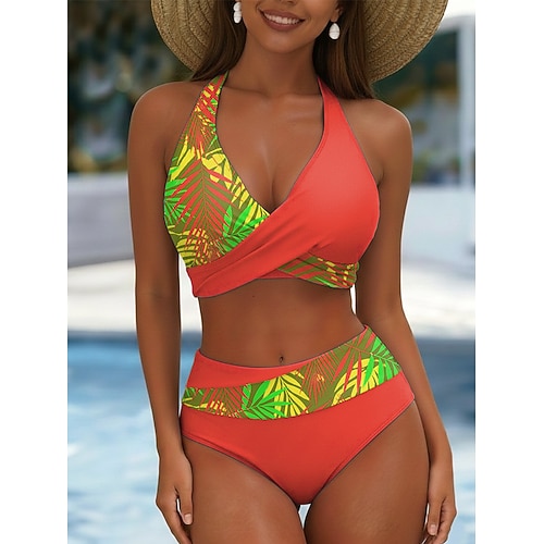 Costume da bagno bikini 2 pezzi donna gonna a palme per le vacanze moda grafica floreale scollo a V senza maniche