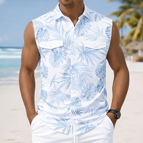 Per uomo Foglia di palma Palma di Cocco Piante Tropicali Camicia Camicia hawaiana estiva Camicia Aloha Senza Maniche Resort Vacanza al Mare Estate Primavera Collo ripiegato Stampa 3D Due tasche