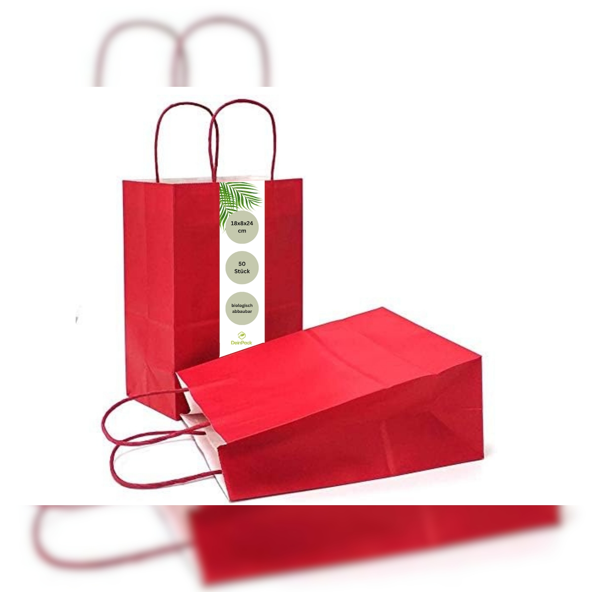 DeinPack Papiertüten aus Kraftpapier - 25 x rote Papier Tüten 18 x 8 x 24 cm