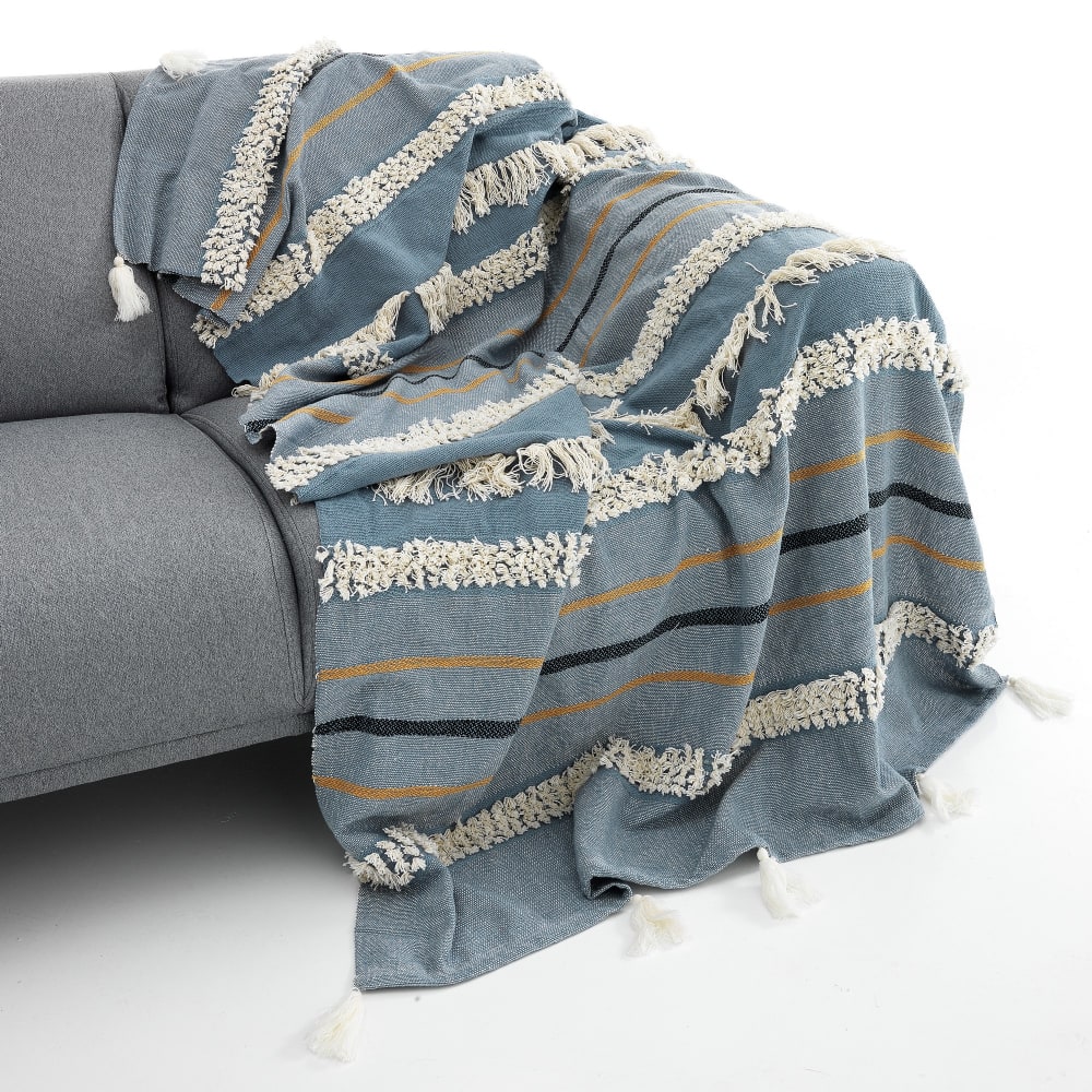 Plaid cotone bohemian con nappe artigianali 150x220 cm