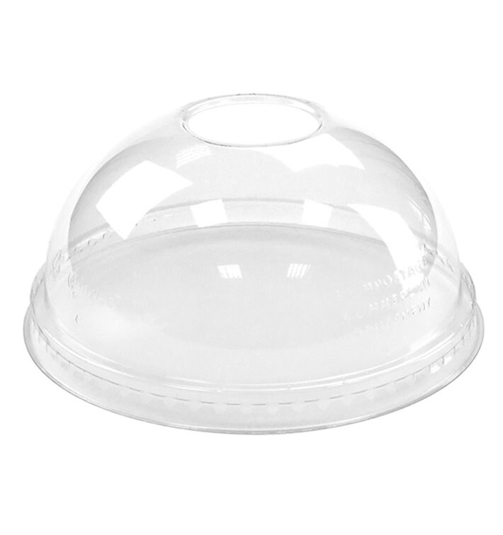 MONOUSO - Bio PLA Domdeckel mit Loch Green Stripe® für Becher Ø9,6cm (50 Stück)