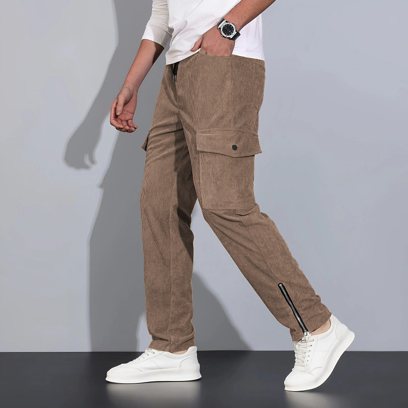 Men's Cargo Pants Trousers Corduroy Pants Slacks Baggy Pants Drawstring Front Pocket Plain Comfort Full Length Outdoor Home Party Vacation Fashion Black Navy Blue Micro-elastic