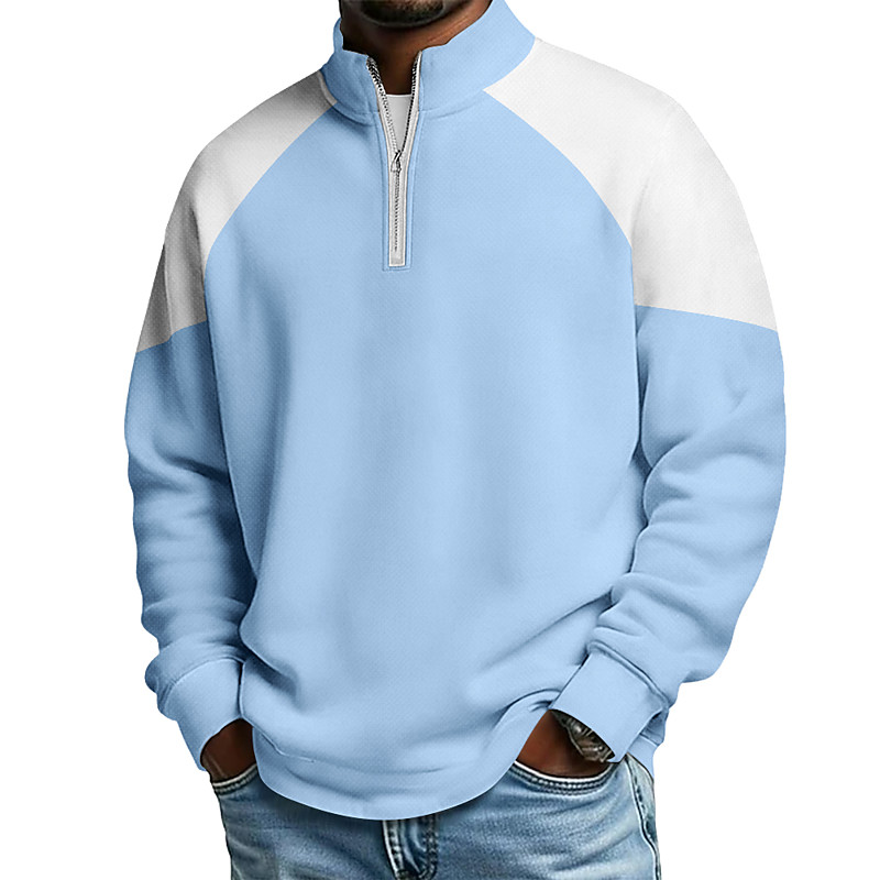 Men's Color Block Zip Polo Shirts Long Sleeve Polo Shirts Grandad Collar Casual School Athleisure Holiday Daily Wear 3D Print Quarter Zip Polo Spring Fall Blue White Green