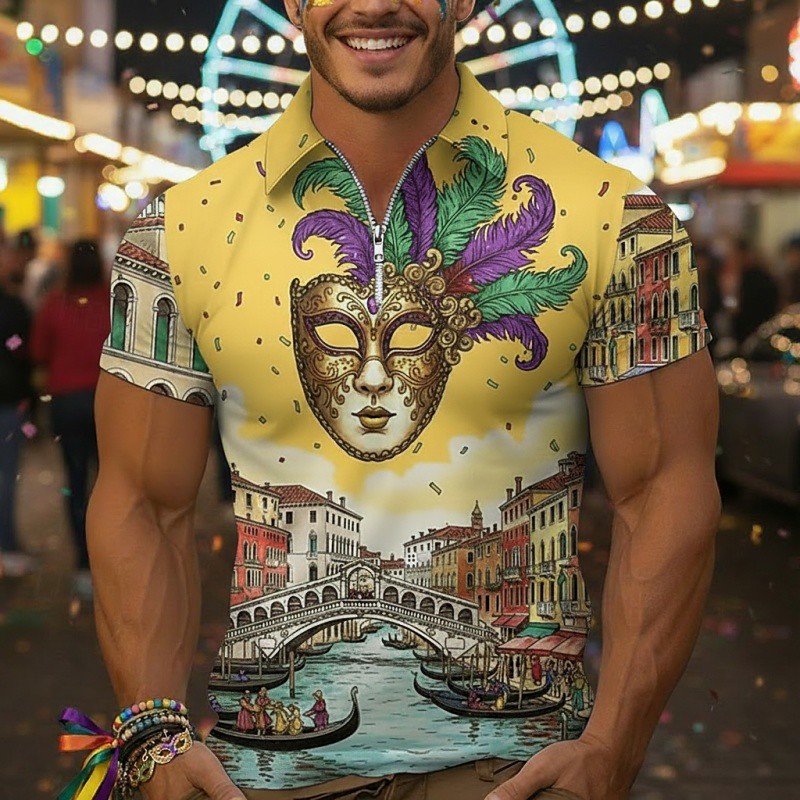 Men's Polo Polo Shirts Daily Carnival Quarter Zip Short Sleeve Fashion Basic Graphic Mask 3D Print Summer Spring Regular Fit Yellow Red Purple Polo