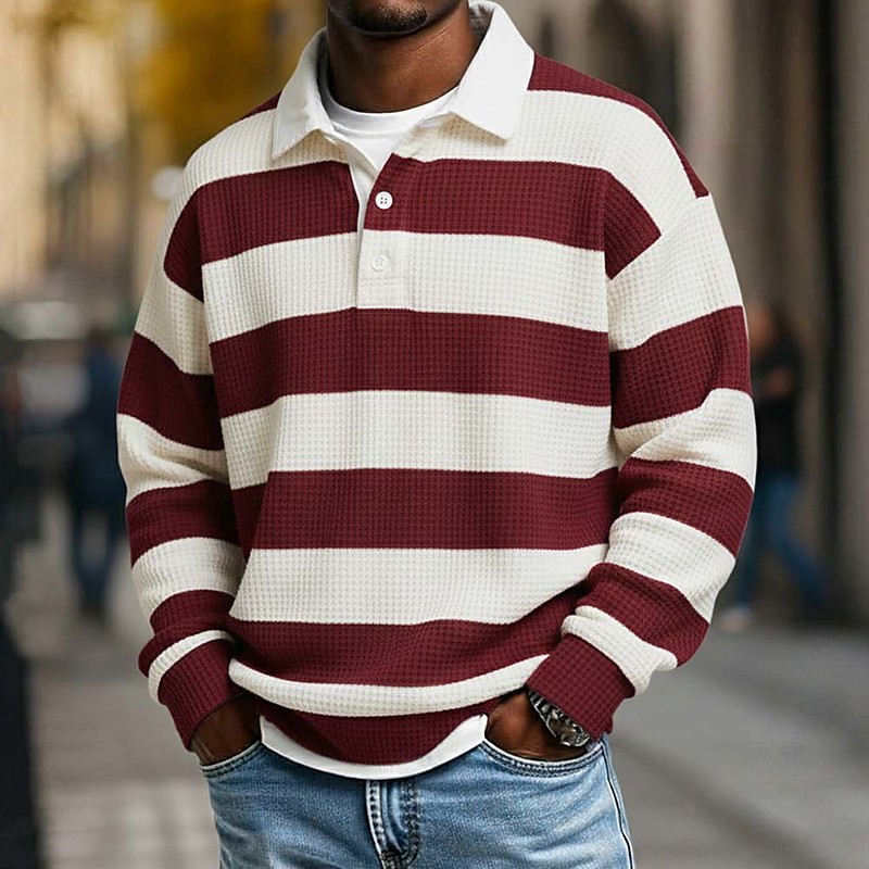 Men's Horizontal Stripes Waffle Polo Shirts Rugby Polo Long Sleeve Polo Shirts Lapel Sportswear Casual School Athleisure Daily Wear 3D Print Spring Fall Winter Blue Red Brown