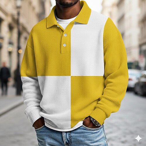 Per uomo Blocco di colori Polo Polo da rugby Testurizzato Manica Lunga Magliette polo Bavero Abbigliamento Sportivo Casual Scuola Athleisure Abbigliamento quotidiano Stampa 3D Primavera Autunno