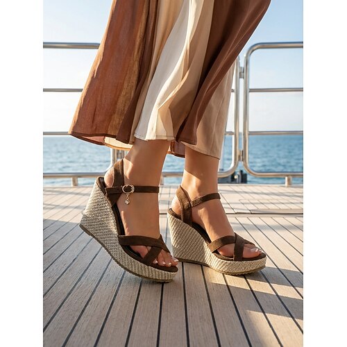 sandali con zeppa espadrillas neri da donna - eleganti tacchi a spillo con cinturino incrociato e fibbia alla caviglia fascino per vacanze in crociera, cene formali sul ponte abbigliamento da resort