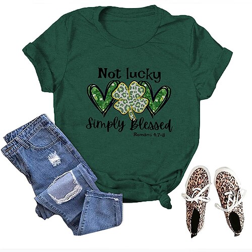 Giorno di San Patrizio Festa di San Patrizio Per donna Maglietta Cuore Foglia Leopardo Moda Manica Corta Girocollo Top Regolari Casuale Uscire Stampato Oro rosa Bianco Rosa Verde militare Verde Estate