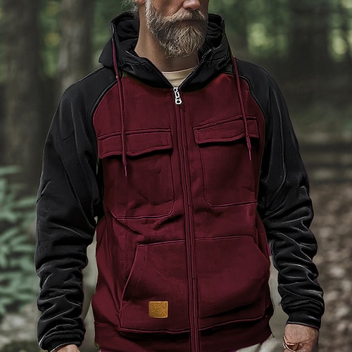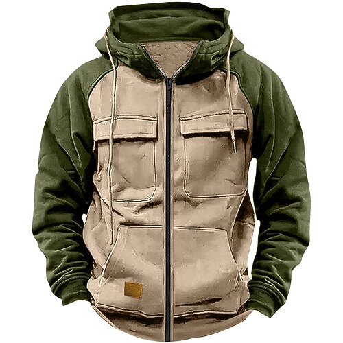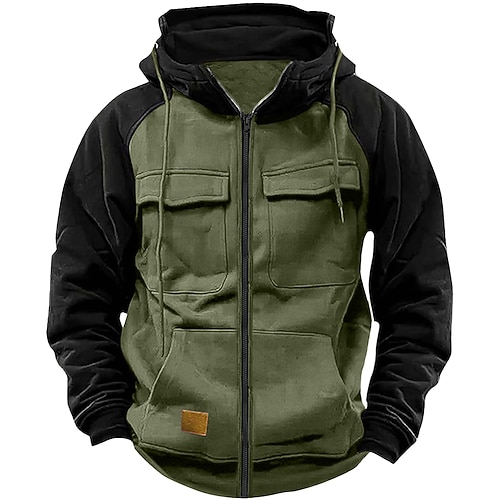 Per uomo Felpa con cappuccio Felpa con cappuccio a zip intera Felpa con cappuccio in pile Felpa con cappuccio tattica Nero Rosa Verde militare Borgogna Blu Con Cappuccio Semplice Patchwork Cerniera
