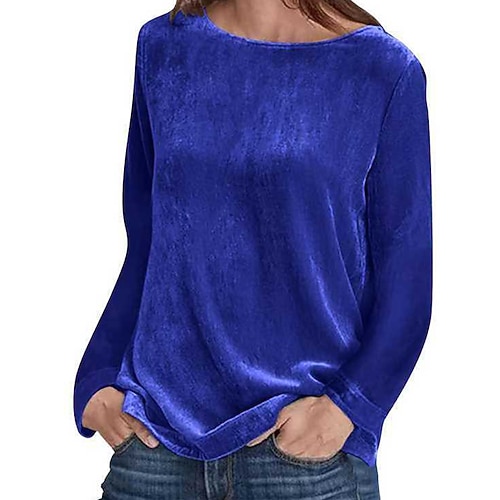Per donna Velluto Elegant Elegante Blusa Semplice Elegante Manica Lunga Girocollo Top Regolari Quotidiano Ferie Uscire Rosa Verde militare Rosso Blu Azzurro cielo Autunno Inverno