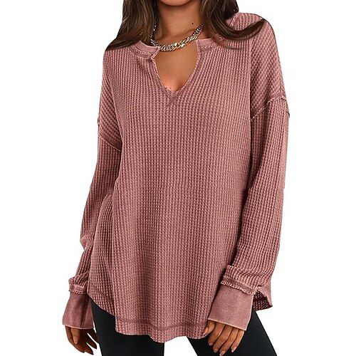 Per donna Maglietta Semplice Casual Manica Lunga Girocollo Top Regolari Quotidiano Uscire Weekend Bottoni Nero Rosa Verde militare Marrone Cachi Autunno Inverno