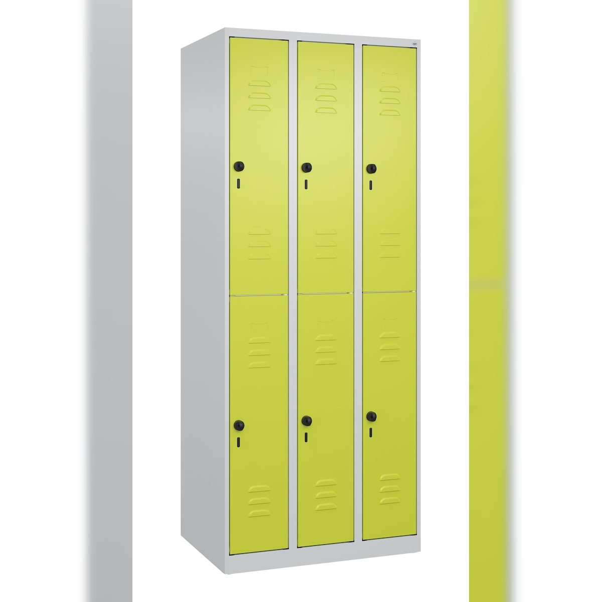 C+P Spind Classic PLUS, 6 Abteile, HxBxT 185x75x50cm, Sicherheitsdrehriegel, Hellgrau/Clowngrün von PROREGAL