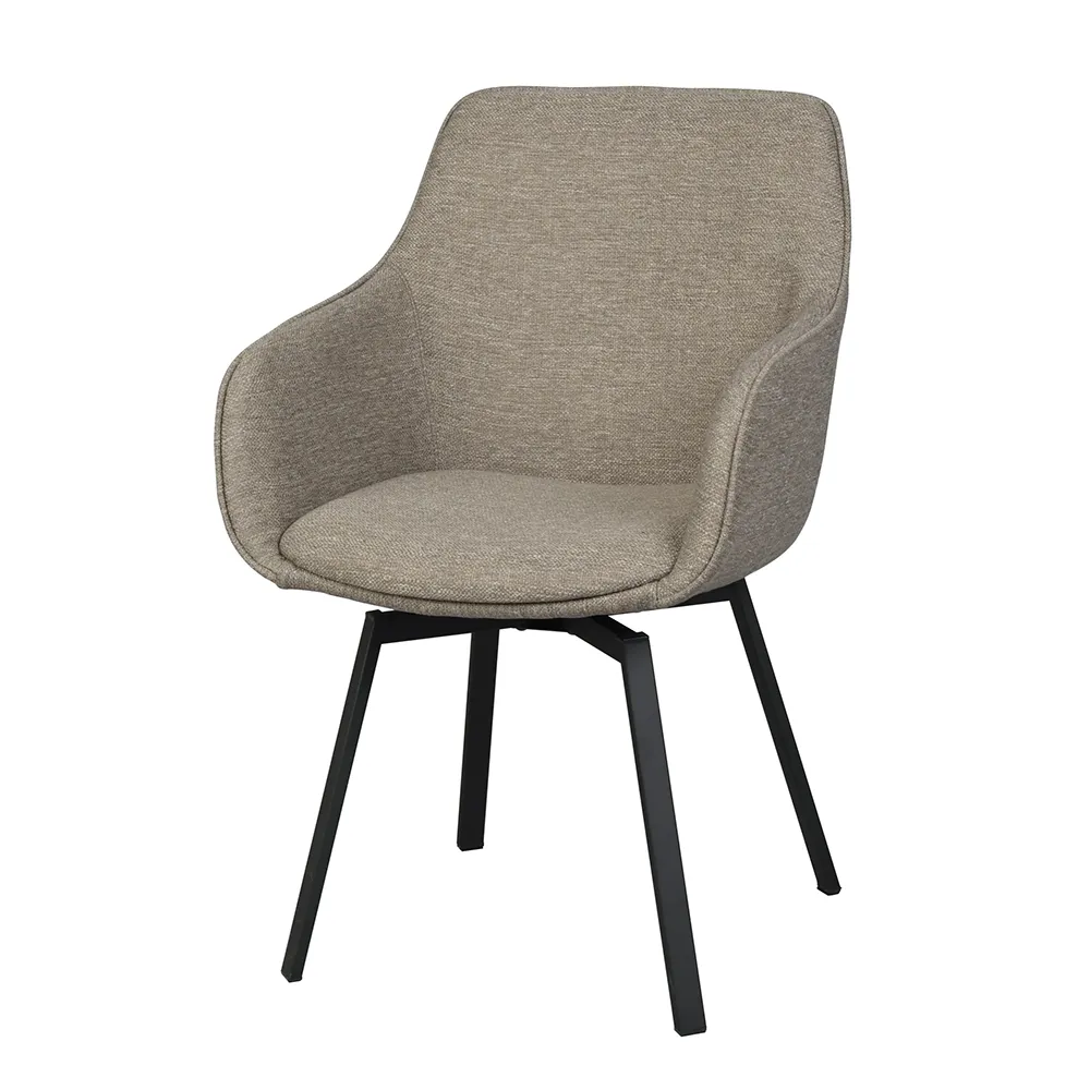 Rowico Home, Alison Stuhl mit Armlehnen dunkelbeiger stoff/schwarze metallbeine