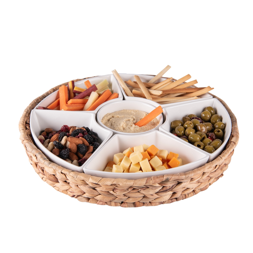 Geflochtenes Aperitifset 7-teilig 36 cm - Weiß Rund Porzellan Table Passion