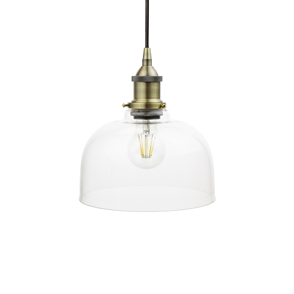 Clear Glass Bell Pendant Light with Antique Gold Lamp Holder and Brown Twisted Cable - The Soho Lighting Company