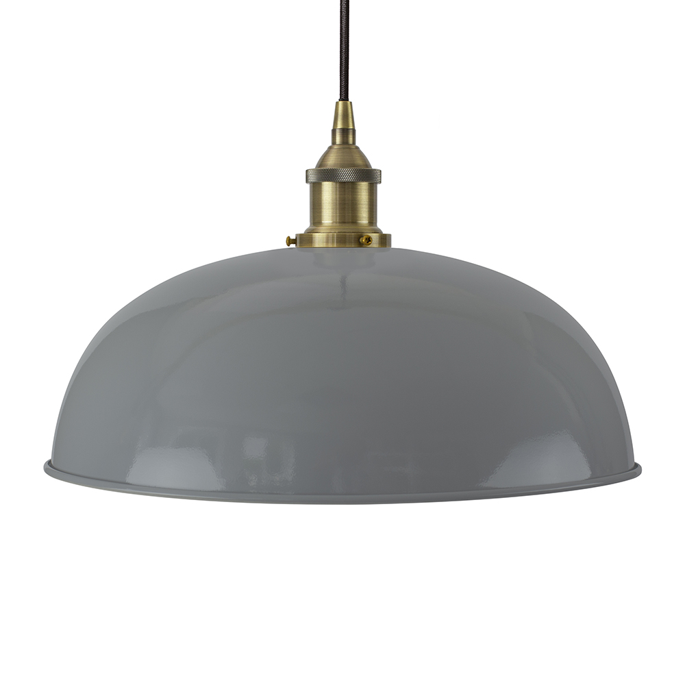 Soho Lighting Pale Grey Classic Small Pantry Metal Painted Pendant Light with Gold Lamp Holder and Brown Twisted Cable