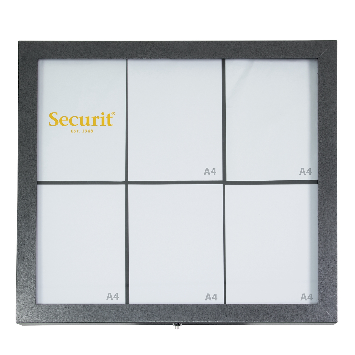 Securit® LED-Informationsdisplay – beschichteter Stahl – Gun Grey – weiße LEDs – Wand- oder Pfostenmontage – zeigt 6x A4 – 16 kg