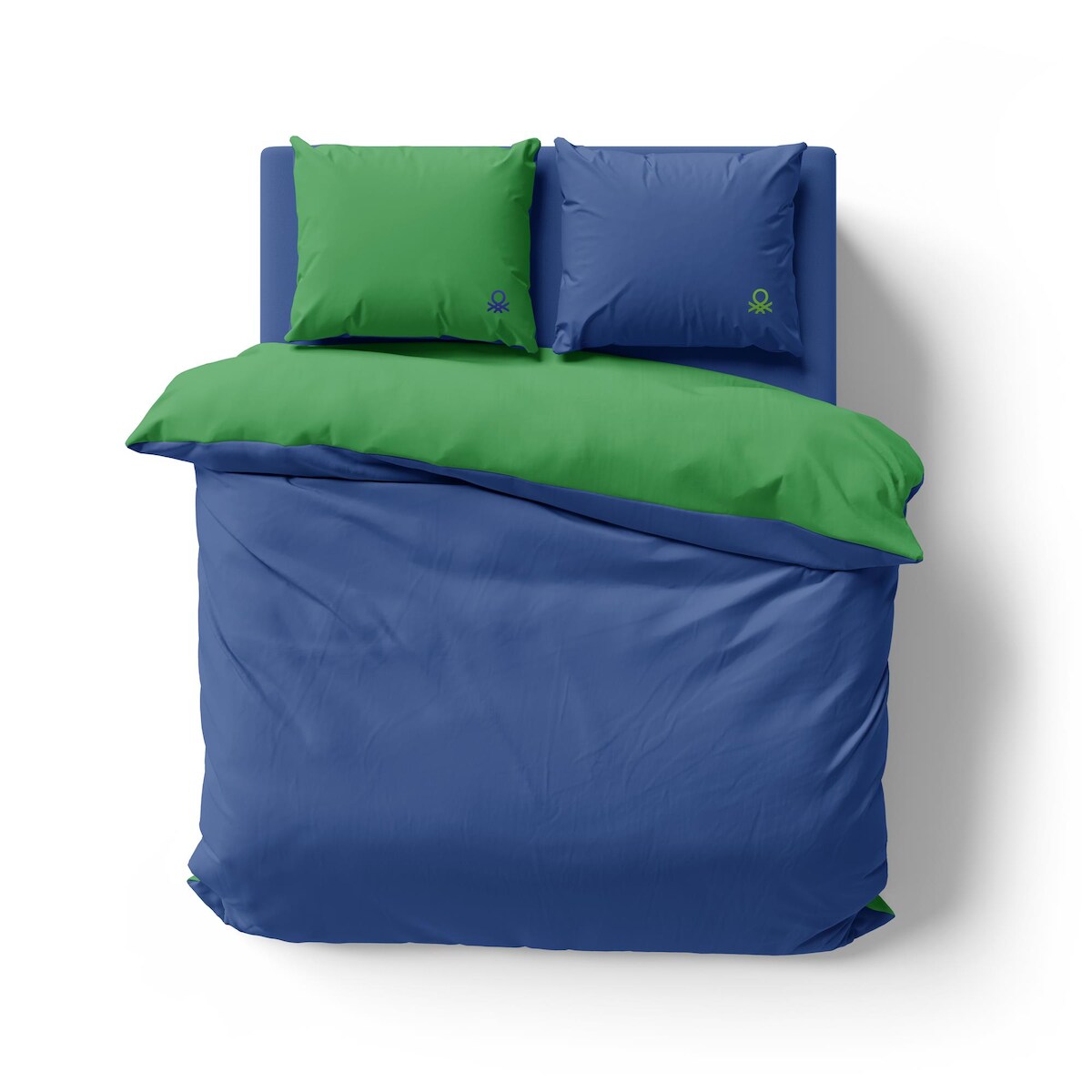 Benetton - Wendebettbezug 200/220 cm mit Laken 160/200+30 cm und 2 Kissenbezügen 50/70 cm in Grün und Blau