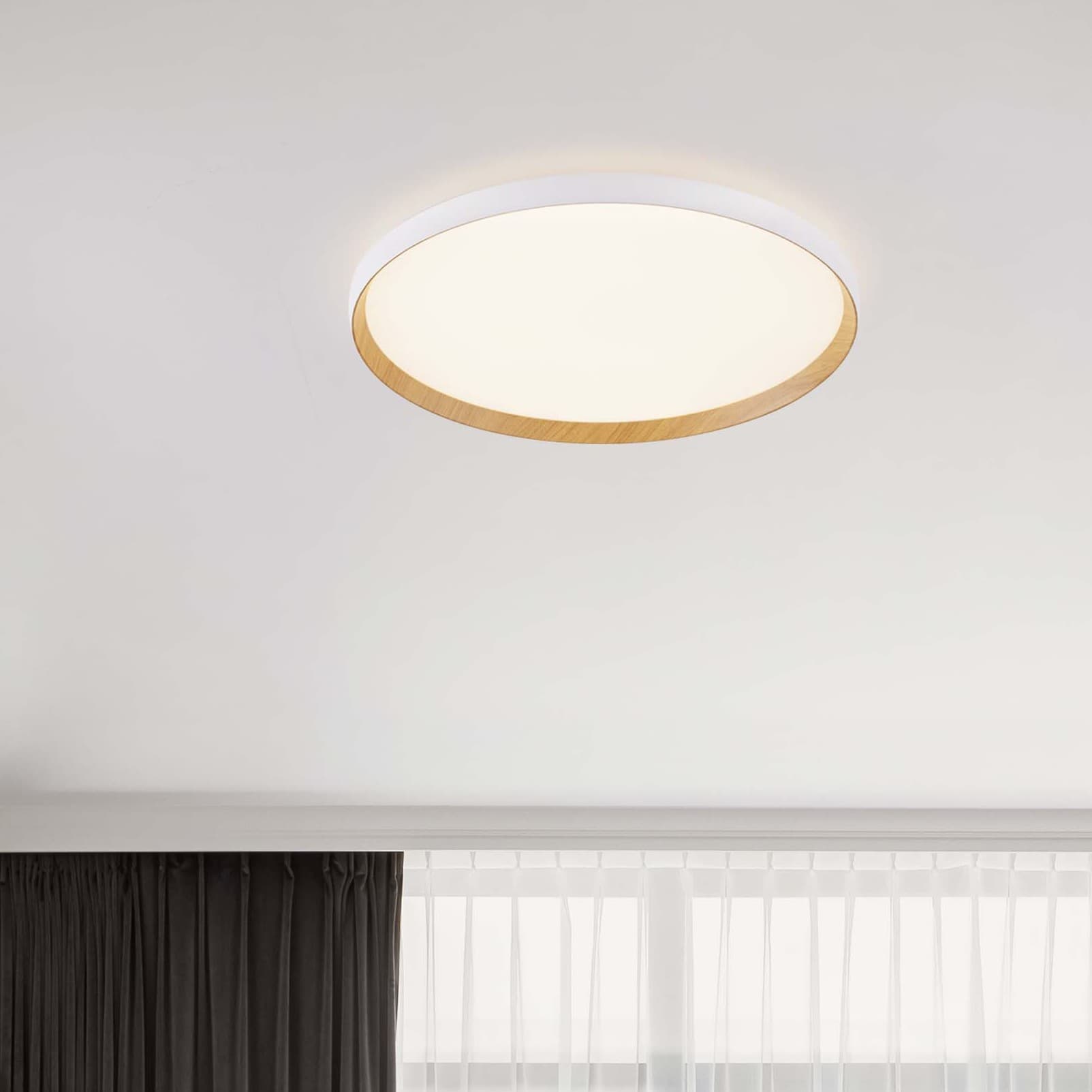 Nova Luce Vomos - plafonnier - Ø 60 x 7 cm - 55W dimmable LED inclus - blanc sablé et bois
