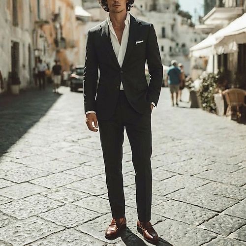 Uomo Smoking Abiti da sposo Casuale Affari Nero Borgogna Primavera, Autunno, Inverno, Estate Tuta Bavero classico Casual Formale Tinta unita Vestibilità su misura 2 pezzi