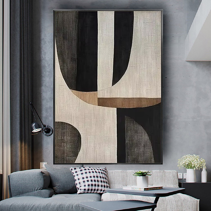 White Abstract Painting hand painted 3D Textured oil painting Wall Art Black Modern Canvas Art for Living Room Decor Trendy Home Decor Hotel Art Piece