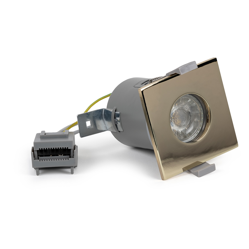 Lieber Polished Brass GU10 Fire rated IP65 Square Downlight