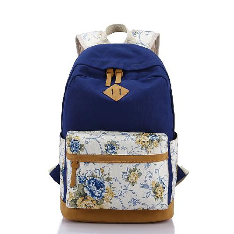 Women's Backpack School Bag Bookbag School Daily Flower Canvas Large Capacity Zipper Black Pink Red