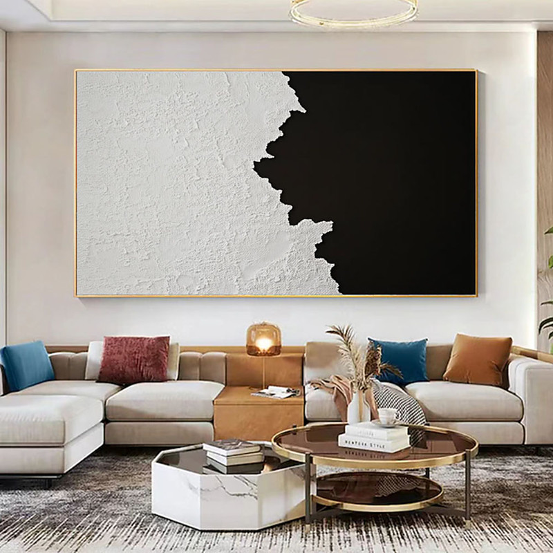 Handmade Black White 3D Minimalist Painting on Canvas Large hand painted Beige Art Wabi Sabi Abstract Wall Art oil painting FOR Living room artwork