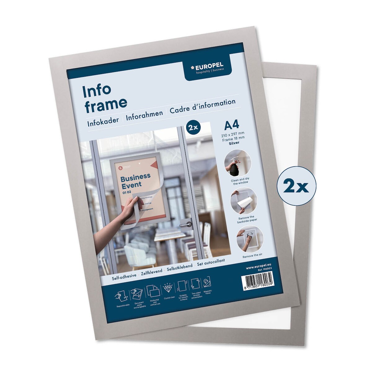 Inforahmen Europel / Selbstklebend Set 2 Stück A4 silber, 196003