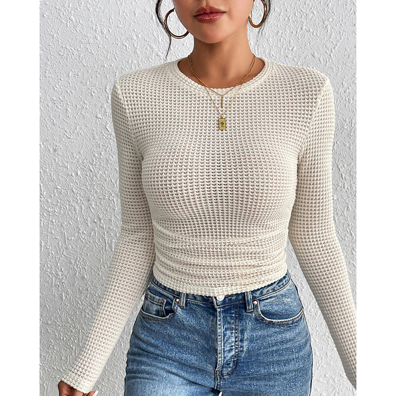Women's Sweater Pullover Streetwear Casual Solid Color Crew Neck Knitted Long Sleeve Regular Tops Knit Daily Going out Weekend White Spring Fall