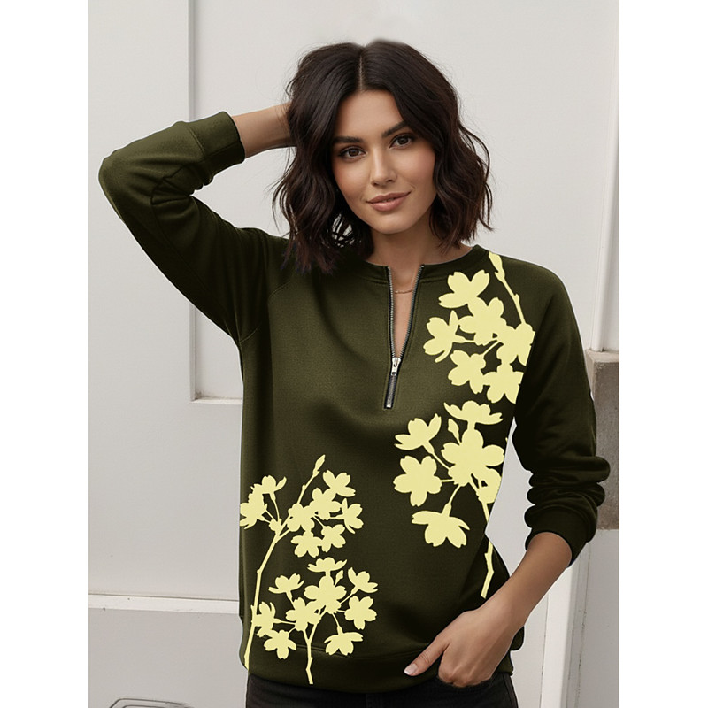 Women's Pullover Sweatshirt Zip Up Sweatshirts Floral Fashion Casual Long Sleeve Crew Neck Regular Tops Street Dailywear Casual Zipper Print Pink Navy Blue Green Spring Fall Winter