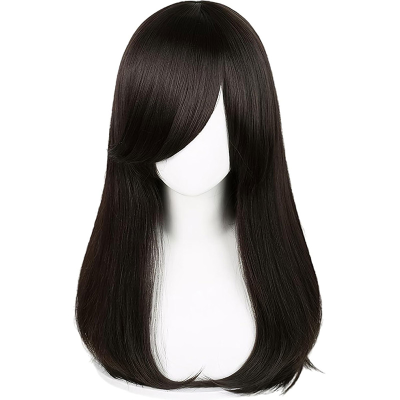 24 Inch Synthetic Wig Women's Wig Dark Brown Long Wavy Curly Hair With Bangs Fashion Elegant Daily Natural Christmas Party Wigs