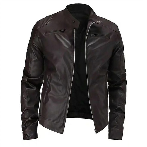 Men's Faux Leather Jacket Biker Jacket Motorcycle Jacket Vacation Daily Windproof Warm Pocket Fall Winter Plain Fashion Classic Stand Collar Regular Black Brown Jacket