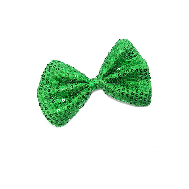 Men's St. Patrick's Day Sequin Bow Tie, Green Polyester Fabric with Shamrock Festive Patterns, Adjustable Dress Bowtie for Irish Party, Parade, Bar Holiday Celebrations