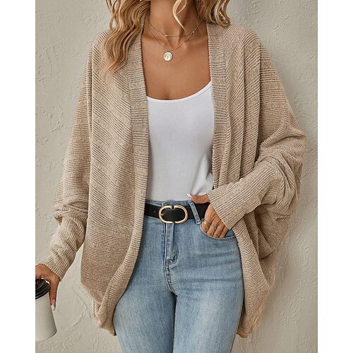 Per donna Felpa Cardigan Moda Streetwear Quotidiano Tinta unica A Coste Aperto davanti Lavorato a maglia Manica Lunga Top Regolari Maglia Ferie Uscire Weekend Nero Rosa Autunno Inverno