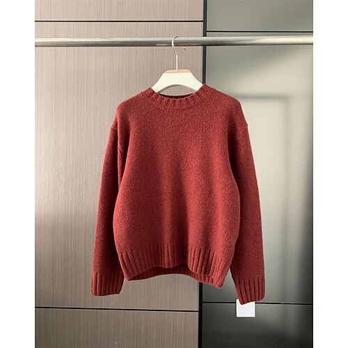 Per donna Felpa Maglione Elegante Moda Carino Tinta unica Geometrico Girocollo Lavorato a maglia Manica Lunga Top Regolari Maglia All'aperto Casa Lavoro Blu Rosso bordeaux Autunno Inverno
