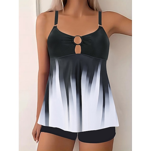 Costume da bagno tankini da donna a 2 pezzi pantaloni shorts controllo della pancia vita alta slim senza schiena abbigliamento da spiaggia per le vacanze scollatura a U ombre e senza maniche