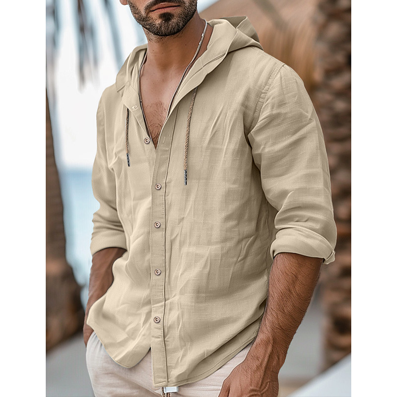 Men's Shirt Linen Shirt Plain Casual Daily Black White Blue Khaki Long Sleeve Hooded Spring Summer Clothing Apparel Buttons