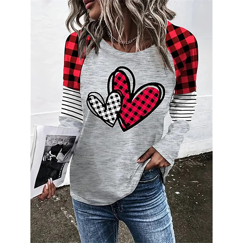 Valentine Women's Heart T Shirt Casual Print Long Sleeve Long Tops Crew Neck Daily Yellow Red Blue Spring Fall