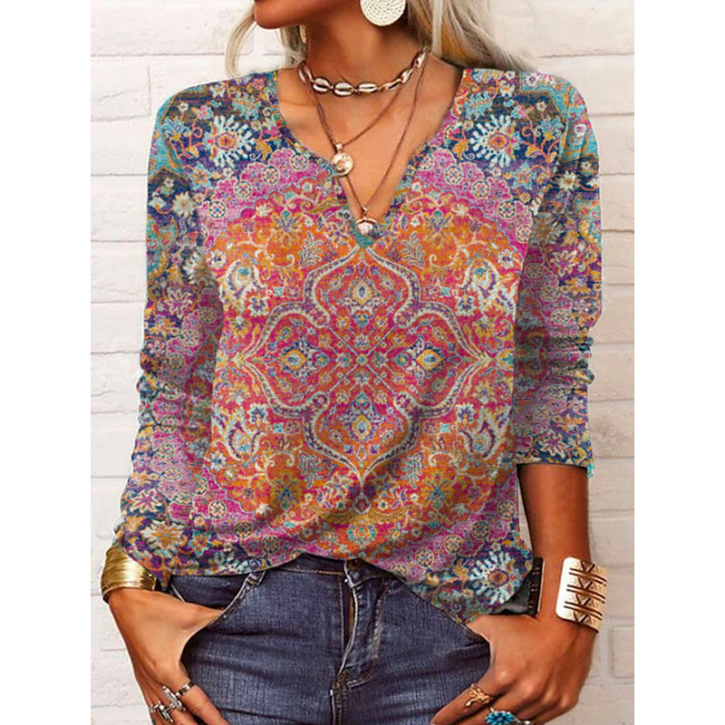 Women's Blouse Floral Retro Vintage Ethnic Long Sleeve V Neck Regular Tops Daily Holiday Print Purple Summer Spring Fall